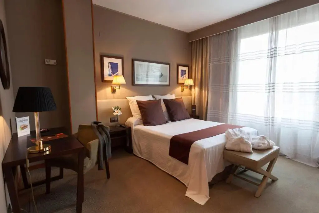Одна ночь. Номер был удобным и просторным. Место было отличное. Сейф предоставлен в номере. Тапочки тоже предоставили. На той же улице есть Petit Conqueridor, но это довольно трудно пропустить главный отель. Я бы точно рекомендовал.